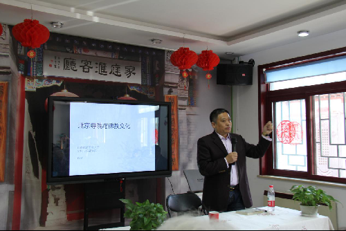 随着讲座渐入高潮,石刚教授结合北京独特的自然风貌和佛教文化,以图片、文字配合生动的讲解,带领居民们逐一领略了北京八大名刹的风采。其中有京城最古老的寺院法源寺、中国佛教协会所在地广济寺、北京最美的寺院潭柘寺、“天下第一坛”戒台寺、以现存最大的铜质卧佛闻名的卧佛寺,以房山石经蜚声世界的云居寺,闹市中的净土白塔寺以及京城最大的喇嘛庙雍和宫。谈到佛教文化,石刚教授说:佛教与儒教和道教共同构成了中国传统文化的三大主干。佛教的人生哲学可以净化人心,稳定社会。同时,佛教的救世情怀、入世精神在今天仍然具有普世意义! 居民们对石刚老师的讲座报以了热烈的掌声。