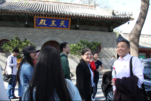 活动结束后,部分师生和社区居民一同前往西四社区所辖的广济寺。石刚一边带领大家参观这座具有代表性的佛教寺院,一边为大家解释寺庙中的建筑和文化。刚刚听完讲座,再来细细品味和感知广济寺积淀的文化意蕴,大家有了不少收获和感悟。
