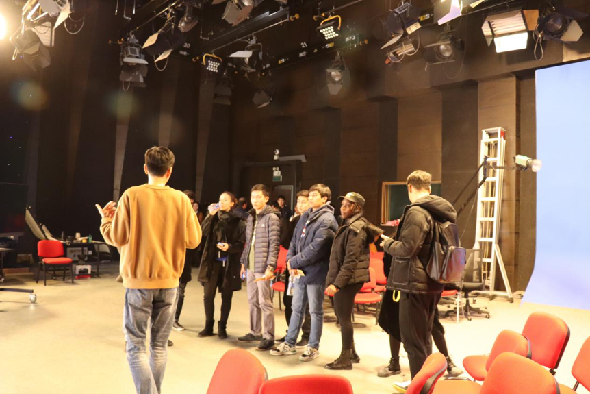 座谈会最后,人文与传媒实验教学中心的王子扬老师带领留学生们参观了位于博纳楼地下一层的人文与传媒实验中心,留学生们亲身体验了实验中心的各种设施。