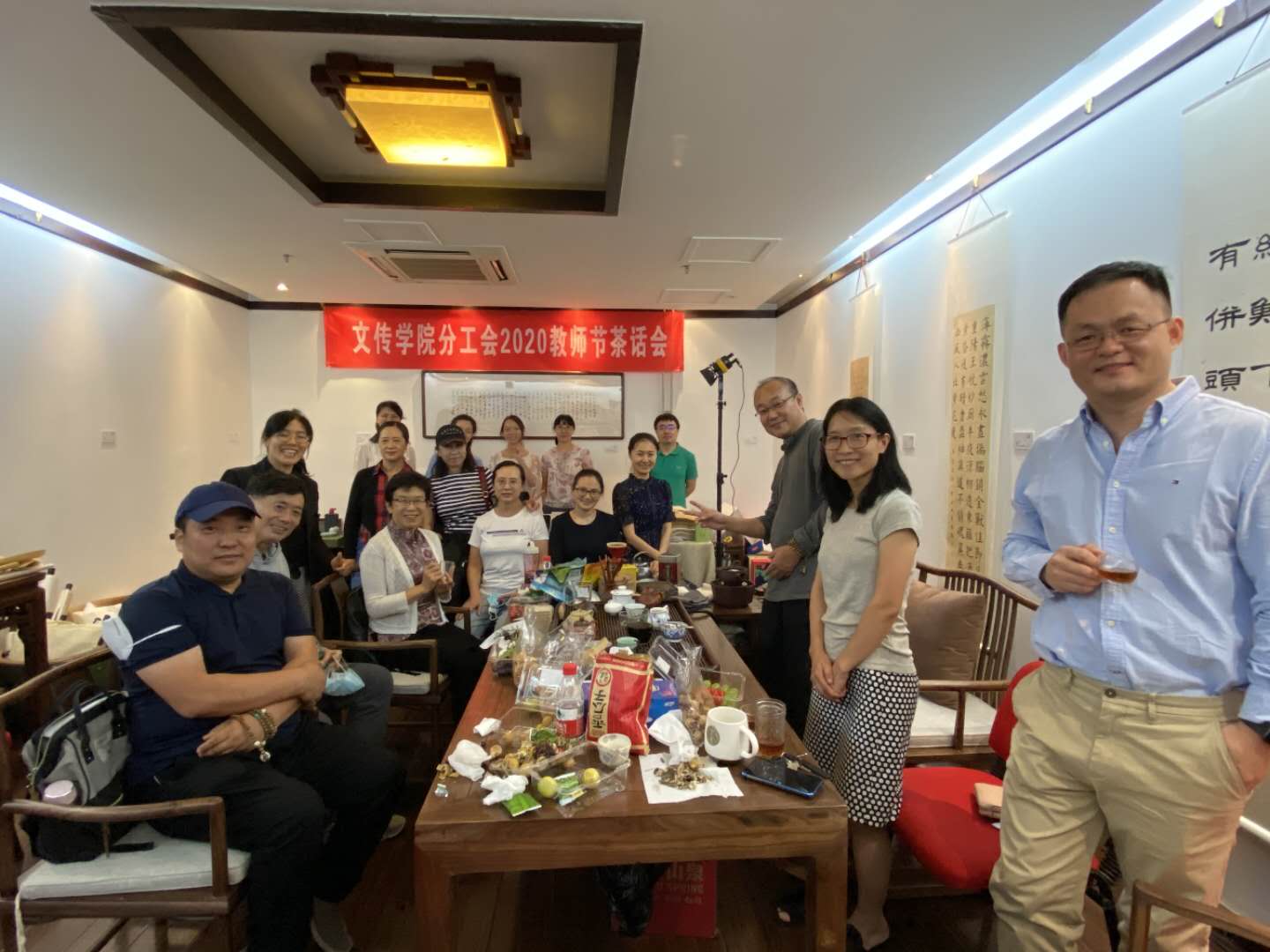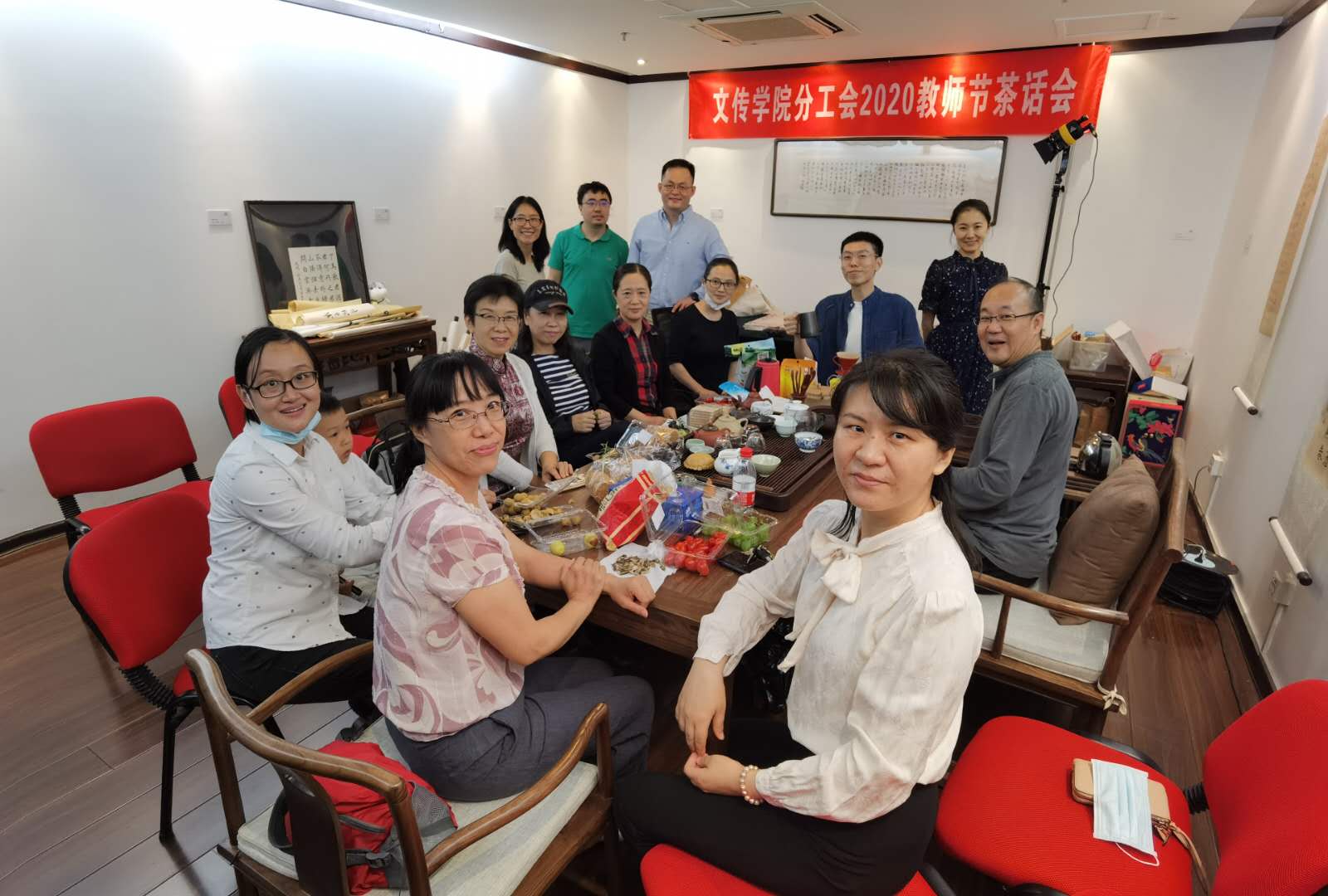 当日,恰逢广告系退休教师夏凡老师返校办理相关手续,出现在茶话会上,给参会的教工们一个特别的惊喜。