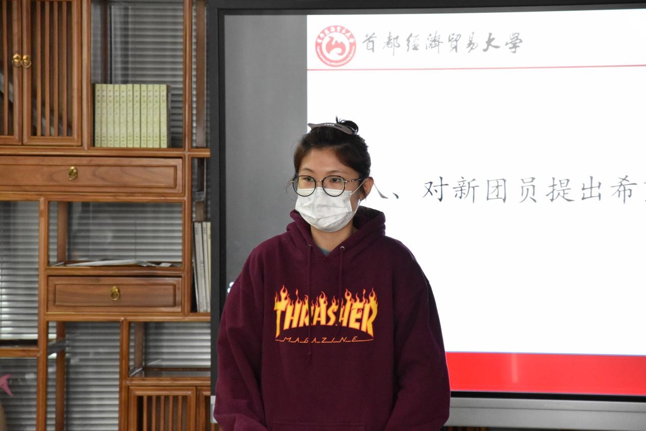 紧接着,吴佳妮作为老团员代表发言,结合自身入团经历,对新团员表示了鼓励,希望他们可以承担起自己“共青团团员”这个光荣的称号,继续前行!