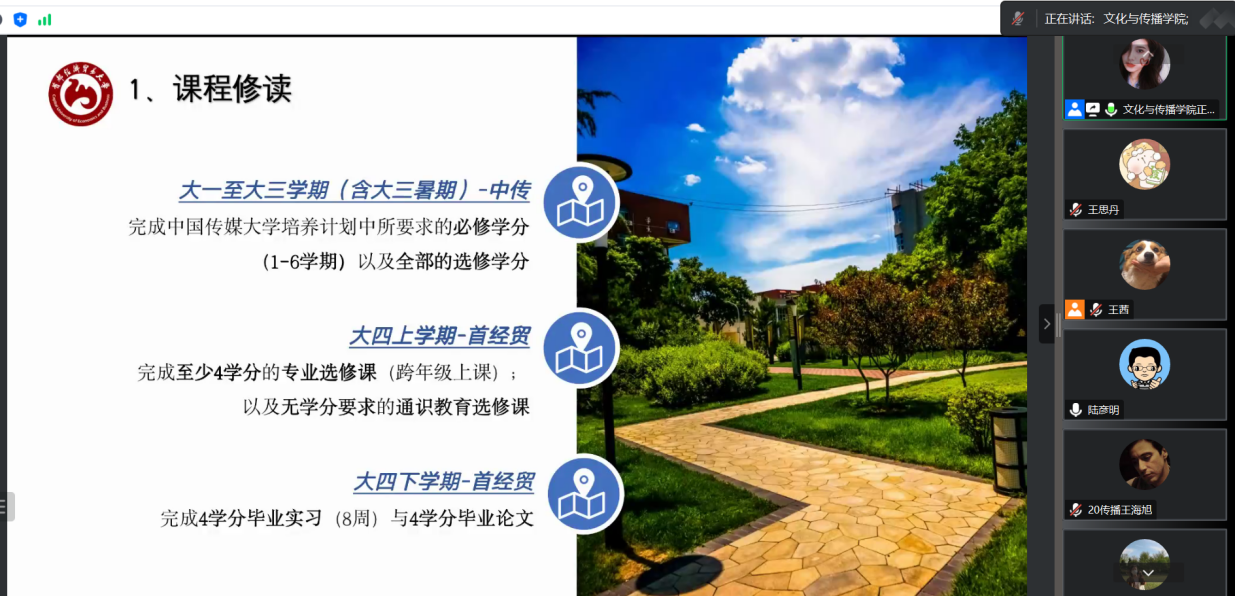 会上,尹思筠在教学管理方面分别从课程修读、推优保研、毕业审核等各方面进行介绍,并针对学生提出的问题进行解答。