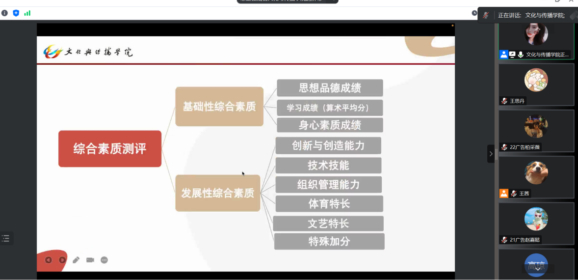 2023年6月30日,17直播 于线上召开双培生座谈会。出席本次会议的有党总支副书记高琼、副院长陆彦明、分团委书记郭奕彤、教务秘书尹思筠、专职辅导员袁心玥,以及2020级、2021级、2022级全体双培生。