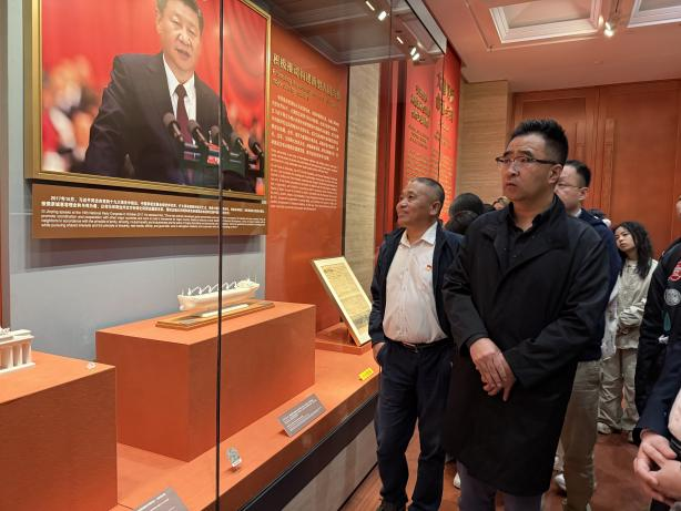 在“大道同行 命运与共”主展区及“世界舞台 大国担当”“缤纷世界 文明互鉴”专题区,师生党员驻足细观670多件(套)外交礼品、40余幅历史照片及近百件文献资料。从阿联酋金孔雀到哈萨克斯坦民族服饰,从“丁丁历险记-蓝莲花”瓷偶到中国海南椰雕……众多国礼展品生动呈现中国外交历程,让师生深刻感悟“独立自主和平共处”到“推动构建人类命运共同体”的实践跨越,领会中国外交的智慧与担当。
