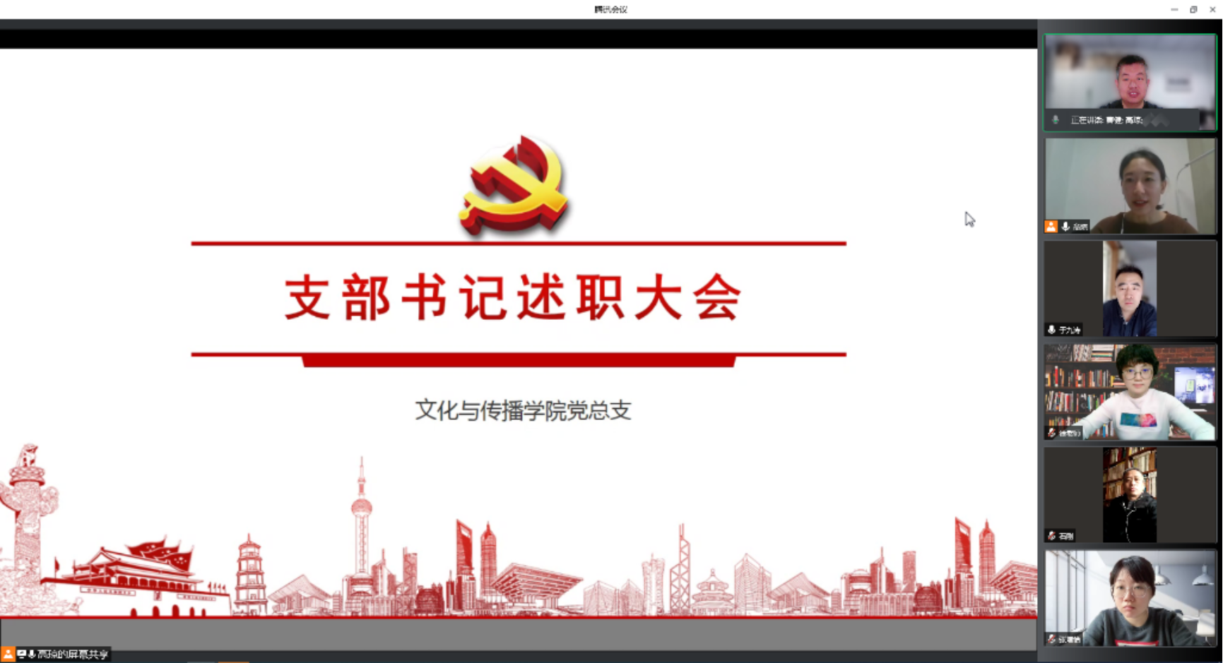 六位党支部书记从支部班子建设、党员队伍建设、工作机制建设、工作成效、工作作风和特色工作等方面依次对本支部的工作开展情况进行了汇报,并就支部工作中存在的问题、今后改进思路与措施等方面进行了梳理和展望。