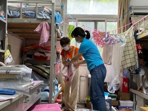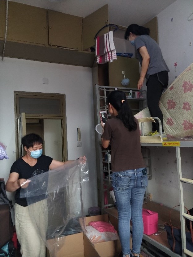 老师们进行行李物品收整工作