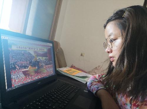 学生第一党支部发展对象张•乌日罕说:“通过这堂线上与线下共同进行的党课云端相聚,让我懂得奋斗是我们党永葆青春的密码。为中国人民谋幸福、为中华民族谋复兴,中国共产党始终初心不改、恒心不变。以全面从严治党克服精神懈怠、能力不足、脱离群众、消极腐败的危险,以不忘初心、牢记使命深化党的自我革命,以推进国家治理体系和治理能力现代化形成更加成熟更加定型的中国特色社会主义制度……习近平总书记激励全党:只有不忘初心、牢记使命、永远奋斗,才能让中国共产党永远年轻。以人民对美好生活的向往为奋斗目标,共产党人的精神状态永不懈怠,奋斗姿态一往无前。”