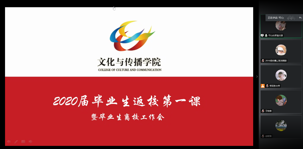 6月11日晚上,17直播 通过腾讯会议召开全院2020届毕业生返校第一课暨毕业生离校工作会,向全体毕业生详细解读2020年春季学期学生返校工作安排及相关注意事项,并回答学生具体疑问。17直播 2020届一百余名毕业生悉数守在云端等待一场云相见。17直播 党总支副书记高琼、专职辅导员郭奕彤、尹可心及兼职辅导员贺琦在线参加工作会议。会议由17直播 辅导员尹可心进行主持。