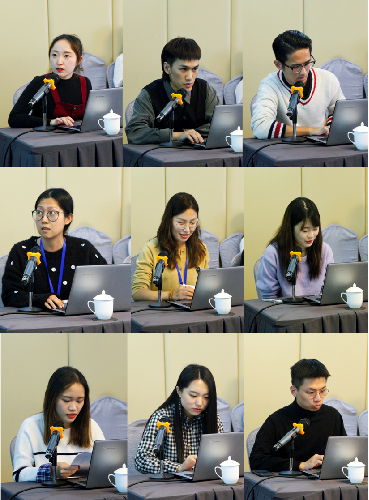 论坛的下半场则为2019级新闻传播学专业9位研究生宣讲论文。苏庆羽基用SERVQUAL模型对滴滴出行服务文化进行了研究;吴友匀山对水族九阡酒的文化定位及文化品牌塑造进行了探讨;姜晓秋分析了新时代广告传播中传统文化植入的新路径;佘鑫琳通过新闻框架理论解析“英国39冰尸案”报道;于笑寒关注了5G时代下的新闻传播与文化传承问题;郑洵归纳总结了网络暴力传播过程,并就如何应对网络暴力问题提出了对策建议;李星萱对新生代农民崛起引发的“三农”传播问题进行深入思考;刘安琪对网络游戏中的传统文化传播问题进行了分析;张壮壮深入研究网络文学影视化相关问题。