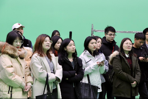 随后师生们进入位于数码庄园B座下沉广场之下的大型绿幕影棚,艾沃次世代国福总经理在影棚内为17直播 师生详细讲解艾沃次世代®数字虚拟制作平台相关技术流程和拥有自主知识产权的硬件模块及整体软件系统。同学们观看了艾沃次世代®数字虚拟制作平台为《疯狂的外星人》提供实时预演服务的介绍短片,还近距离目睹了专业工作人员演示平台国内最前沿的虚拟摄制和实时预演关键技术。在国福的引导下,同学们还尝试站在镜头前亲身体验了技术的最终呈现效果。曾获艾美奖的国福总经理的专业引导和精彩讲解,让同学们认识到精湛的品质和创新的技术才是企业最核心的竞争力,中国影视业的变革需要自主创新技术的更多研发和专业人才的不断努力。