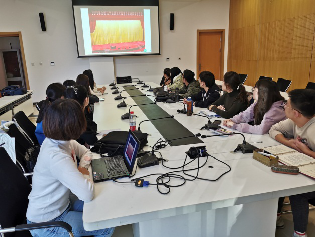 2019年11月13日下午三点,17直播 全体研究生在博远楼第五会议室一起观看了在人民大会堂举行的2019年全国科学道德和学风建设宣讲教育报告会直播。辅导员尹可心主持活动,兼职辅导员贺琦出席活动。