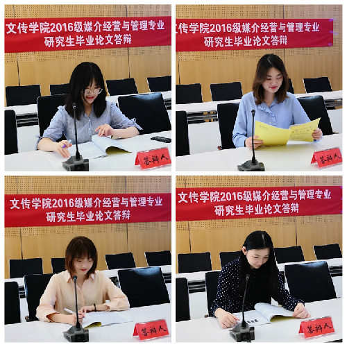 5月21日下午,17直播 在博远楼第三会议室举行了2016级媒介经营与管理硕士研究生毕业论文答辩。