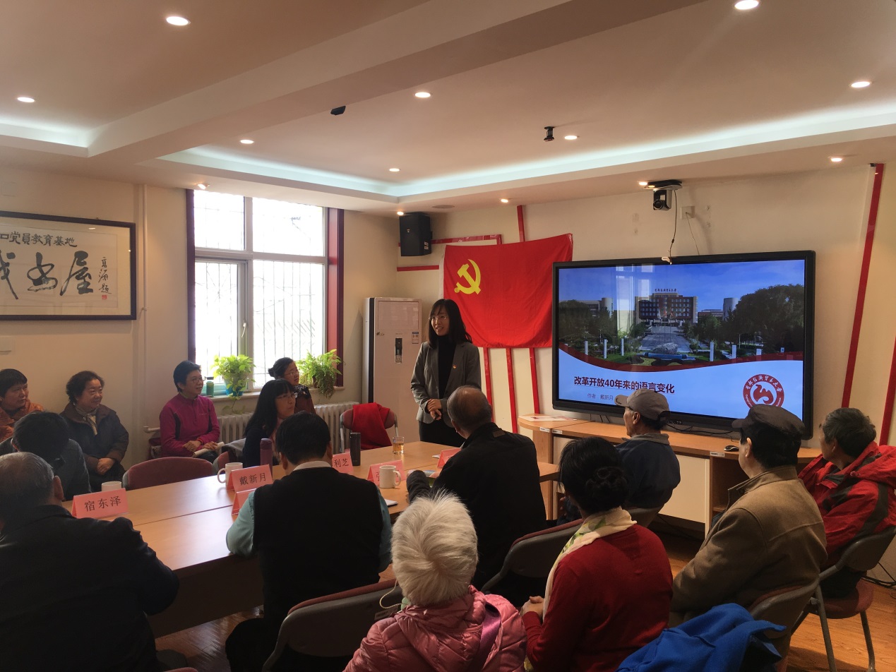 秋高气爽,阳光明媚。2018年11月16日上午9时,17直播 汉语言文学系党支部教师来到位于北京西城区育德胡同的书香驿站,进行庆祝改革开放四十周年的党员交流分享活动。参加活动主要有17直播 党总支副书记宿东泽,汉语言文学系党支部全体教师、学生党支部书记、驿站工作人员和育德社区的居民们。