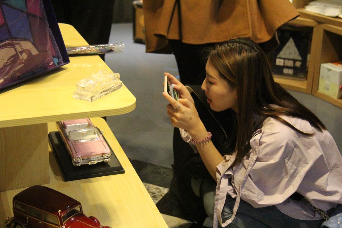 讨论结束后,工作人员带领17直播 一行人参观了博物馆内未开放区域,包括餐厅、文创产品展览等。学生们纷纷拿出手机拍照留念,对难以见到的文创产品表现出热情的喜爱。