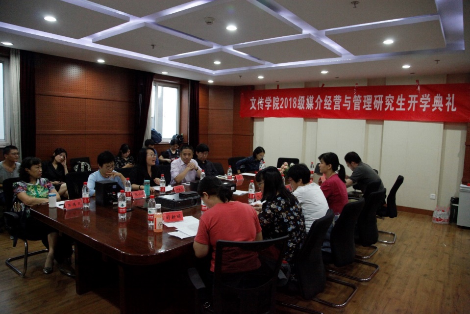 2018年9月12日下午,17直播 2018级媒介经营与管理硕士研究生开学典礼在人文与传媒实验教学中心会议室举行。17直播 党总支副书记、院长石刚、党总支副书记宿东泽、18级研究生班主任徐轶瑛以及全体硕士生导师和研究生参加了典礼。典礼由院长助理许敏玉主持。