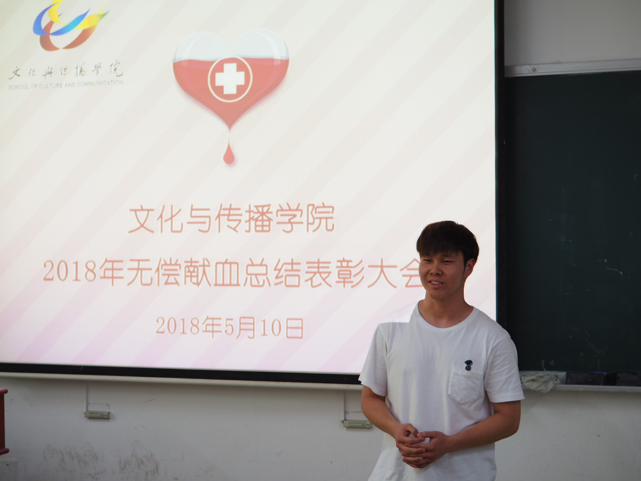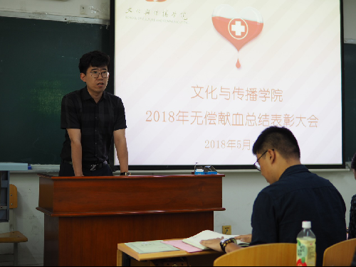 5月10日中午,17直播 于慎思楼120教室举行了2018年无偿献血总结表彰会。参加本次表彰会的有17直播 党总支副书记、院长石刚,党总支书记付琳,辅导员陈子轩和参与献血的35名学生以及各个班级的学生干部代表。会议由17直播 党总支副书记宿东泽主持。