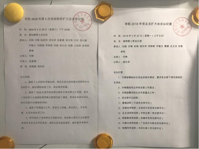 按照学校民主生活会的工作要求和17直播 于三月召开的民主生活会提出的整改措施,进一步拓展党务公开和院务公开的手段和平台,党总支推出17直播 信息公开的新举措。从4月开始,每月第一周将上个月的党总支委员会、党政联席会和党政联席扩大会的会议纪要汇总后在17直播 公告栏进行公示。下一步将在17直播 网站开辟专栏同步公示。