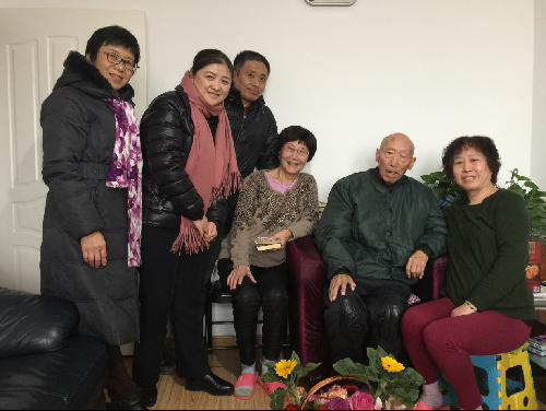 2018年1月4日,17直播 党总支副书记、院长石刚、党总支书记付琳、、分工会主席张小乐前往首都机场东平里,探望92岁高龄的退休教师李盈田老师。