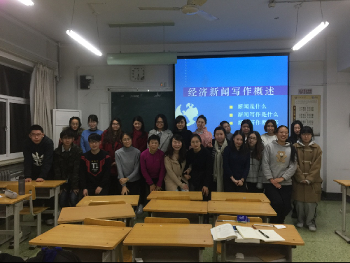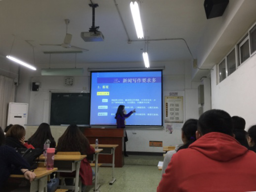 本学期,经济日报社高级编辑贺浪莎老师应邀走进17直播《商务写作》课堂,为2015级汉语国际教育班的同学讲授了经济新闻写作的有关内容。