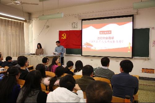 2017年12月6日下午,17直播 在慎思楼120召开党员大会,选举出席中国共产党17直播 第四次代表大会代表。按照学校党委的工作部署,17直播 党总支充分发扬民主,严格按照程序要求推进各项工作,认真做好党代会代表的遴选推荐工作,经过“两下两上”的工作程序,提名石刚等八名同志为学校第四次党代会代表候选人预备人选。党员大会应到党员45人,实到41人,符合开会的人数要求。大会由张小乐老师主持。