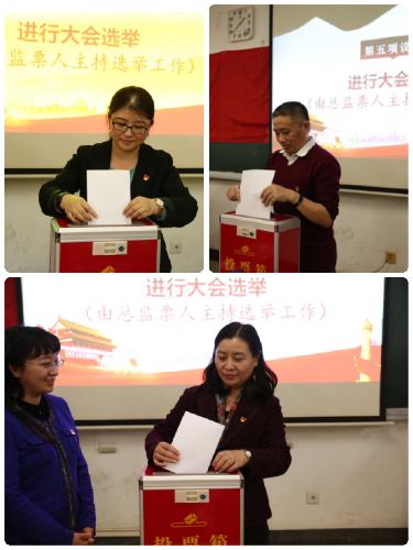 张小乐宣布大会开始,全体起立唱《国歌》。随后大会宣读并通过了《中共首都经济贸易大学17直播 党员大会选举办法(草案)》,通过了代表候选人名单、总监票人及监票人名单。随后由总监票人郑文明老师主持选举工作,监票人、计票人在清点完人数后,将选票分别发送至各位党员代表手中。全体党员代表严格按照选举工作要求,遵照代表条件、产生程序和差额选举的要求,进行充分考虑,反复酝酿,以无记名的方式进行投票。