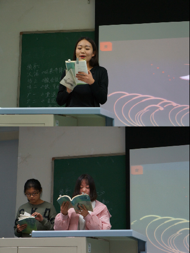 接下来进行展示的传播学三班用简单却又深情的朗读带领观众走进了三毛的世界。展示书目为《撒哈拉的故事》。精彩的故事配以深情的朗读令人陶醉其中。三毛背着行囊走进了荒凉单调的,在沙漠中寻找感受生活的真善美。书中每个故事都充溢着一种浪漫、浓情的异域情调,字里行间反映着大沙漠独有的地形地貌与风土人情。