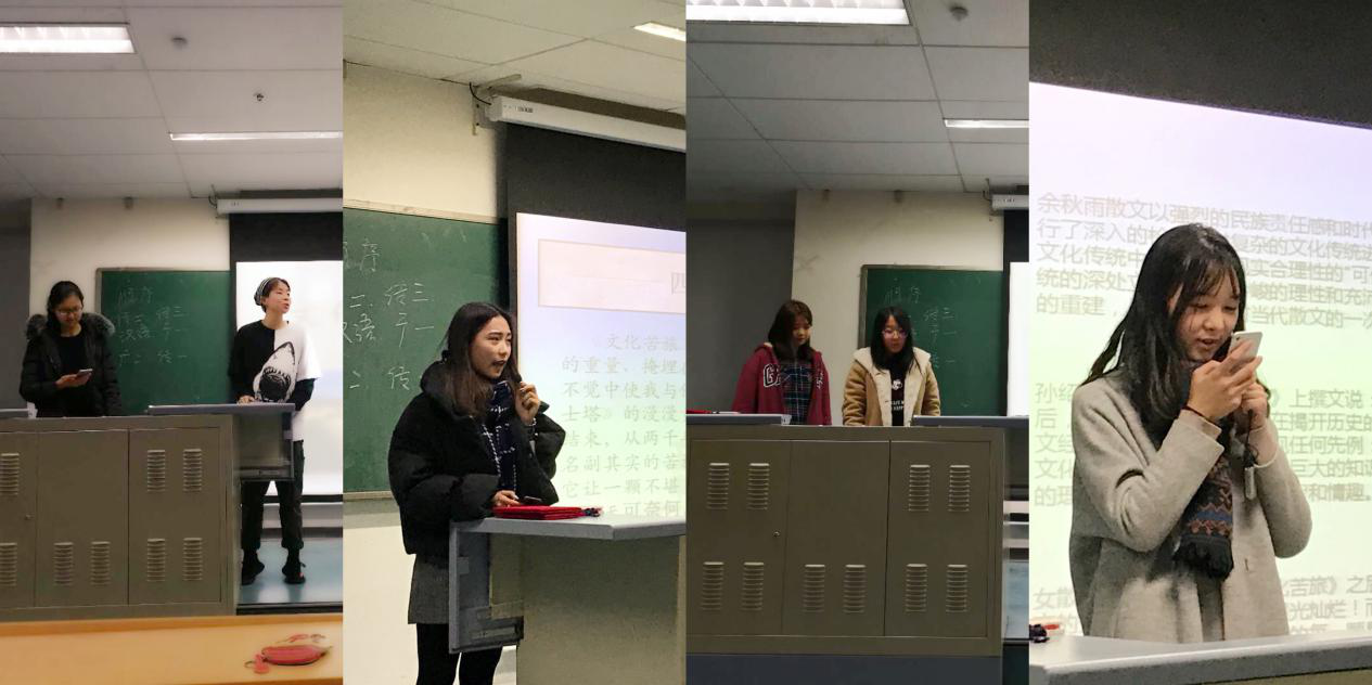 接着,传播学一班分享了中国当代作家余秋雨的《文化苦旅》。他们不仅详细介绍了这本书的作者、创作特色和创作背景,朗读书中的经典片段,还对所读内容进行了鉴赏,字里行间流露出浓厚的文化韵味,字字真言句句真心。另外分享读后感的学生还说道,这段文化之旅虽苦,却让每个读者甘之如饴。