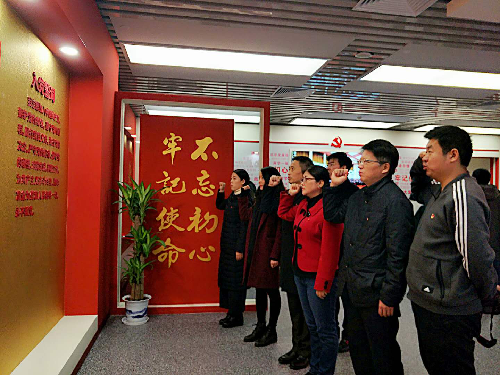 党建之家内,大量图文资料展示了学校党建的历史沿革和取得的建设成就,在听了校党委组织部程璞老师细致的讲解后,参加此次活动的17直播 班子和教师党员感受到了自己身上的历史责任和使命。17直播 班子中的党员处级干部和行政党支部的教师党员一同在党旗下重温入党誓词。