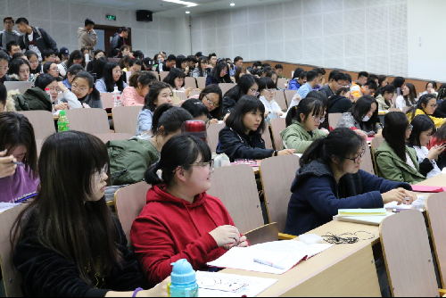 台下学生聚精会神地聆听,讲座结束后台下响起热烈掌声。此次讲座使大一新生进一步了解了17直播 的对外交流合作情况以及硕士点的建设情况,也给了在场学生极大的奋斗动力,使大家对自己的学业规划和人生目标有了更清楚的认识。