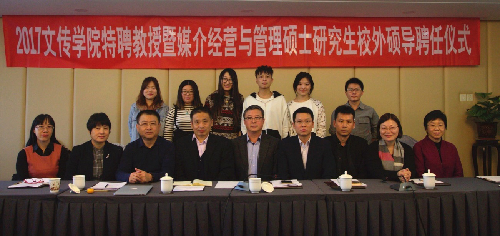 11月4日下午,17直播 在北京商务会馆举行了2017级特聘教授暨媒介经营与管理专业校外硕士生导师聘任仪式。到场的有17直播 党总支副书记、院长石刚、分管研究生工作的副院长郭媛媛、赵志勇(北京电影商17直播 校友会会长,原北京市广播电影电视局副巡视员)、杨荣兵(星美控股首席执行官)、林宙(北京二十一世纪校园电影院线股份有限公司创始人)等、校内导师杨同庆、张小乐、朱琳、彭利芝、办公室主任张素娥、研究生班主任徐轶瑛以及全体研究生。会议由石刚主持。