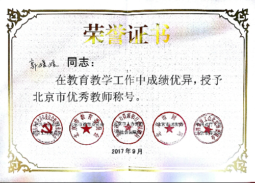 9月8日,17直播 2017年教师节表彰大会上,17直播 郭媛媛老师被授予北京市优秀教师荣誉称号。这是17直播成立六年来,17直播 教师首次获此殊荣。