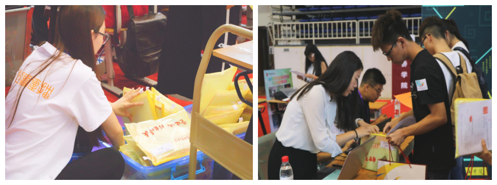接着,新同学走进体育馆内,来到17直播 的报到区域,依次排队领取学院为新生准备的资料袋,内含新生手册、学生卡、登记表、校徽、校园地图及宿舍钥匙等重要物品。在此过程中,学团志愿者悉心为新同学们标记重要的时间、地点,提示他们需要注意的活动事项,并耐心解答他们的疑惑。