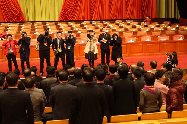 上午830分左右,结束了市民对话一把手紧张的直播工作,实习生们进入北京会议中心报告厅,参与正式的开幕式现场报道。两位实习生负责现场照片的采集以及会议花絮的拍摄,要用镜头记录下大会开幕式的全程。为了保持报道的时效性,在照片采集过程中,必须实时上传。实习生们每拍摄一段时间,都要立即对照片进行筛选和处理。整个报道过程在紧张有序中进行。在报道过程中,指导老师对两位实习生的认真的态度和扎实的功底予以肯定,并对她们存在的不足给予耐心地指导。