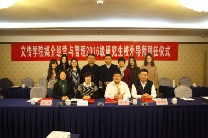 11月5日下午,17直播 在北京商务会馆举行了第二届媒介经营与管理专业校外硕士生导师见面会。17直播 党总支副书记、院长石刚、分管研究生工作的副院长郭媛媛、四位校外硕士生导师杨柘、周永萍、徐颂东、张颖以及校内导师杨同庆、张小乐、许敏玉、朱琳、办公室主任张素娥参加了此次会议,同时参加会议的还有2015级和2016级全体硕士研究生。本次会议由副院长郭媛媛主持。
