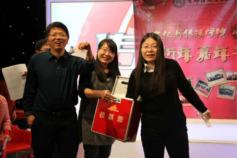 12月23日,17直播 2016年“新年嘉年华”活动在传媒实验教学中心演播厅举办。17直播 领导班子与全体教职员工欢聚一堂,总结回顾2015年的工作,迎接即将到来的2016年。本年度嘉年华由广告学系承办,主持人由广告学系教师张蕾、汉语言文学系教师李培涛担任。