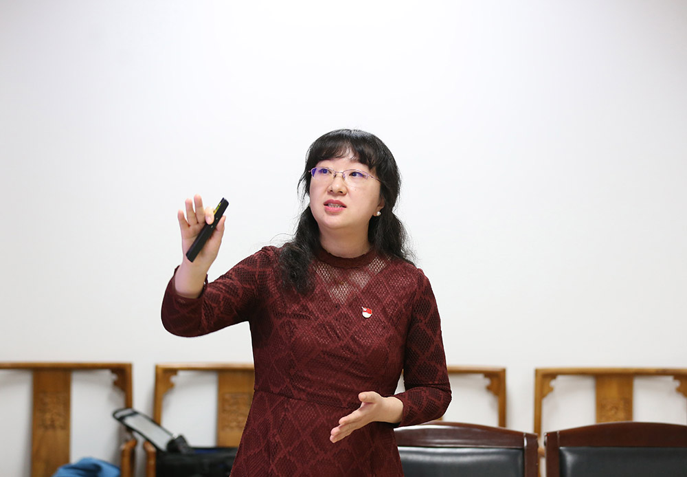 汉语言文学系教师李培涛以《大学语文》为例、广告系教师王端以《H5移动营销设计》为例进行了课程教学演示,以生动案例展现了在日常课堂教学中如何把政治认同、国家意识、文化自信、人格养成等思政元素与专业知识、专业技能的传授有机融合的实践探索。