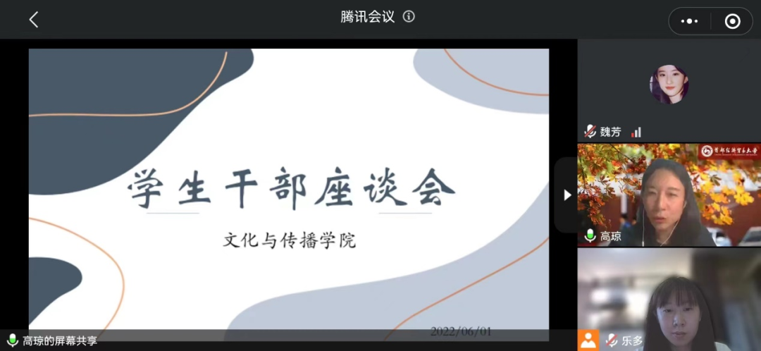 2022年6月1日15:30,17直播组织召开学生干部座谈会。党总支副书记高琼、分团委书记郭奕彤、各团学组织骨干和17直播 全体班长、团支书参加会议。