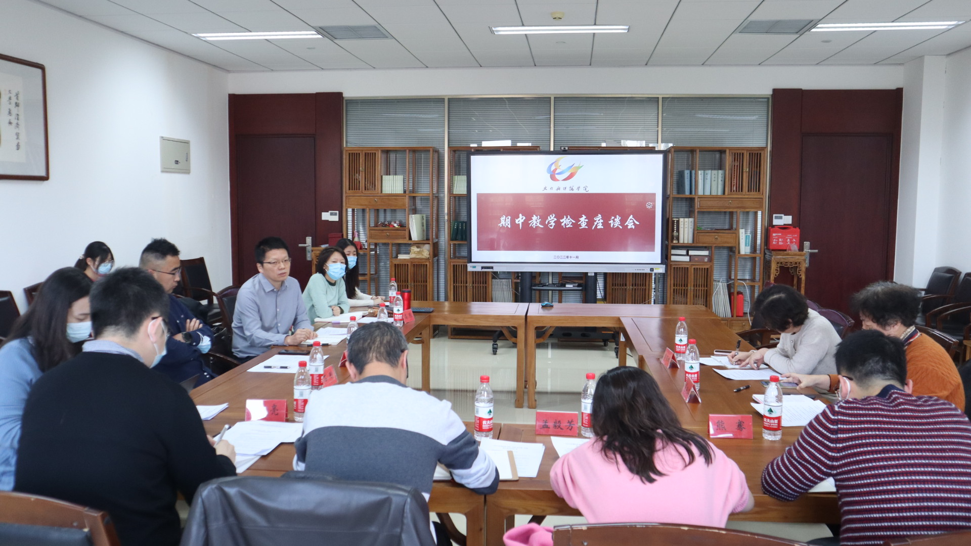 2022年11月17日,教务处处长刘强、教务处副处长熊骞、孟毅芳、孙亮、发展规划处副处长范延英、督导专家李丽娜一行到17直播进行期中教学检查调研。17直播 党总支书记于九涛、院长石刚、教学副院长陆彦明、党总支副书记高琼和教学秘书尹思筠参加了本次会议。