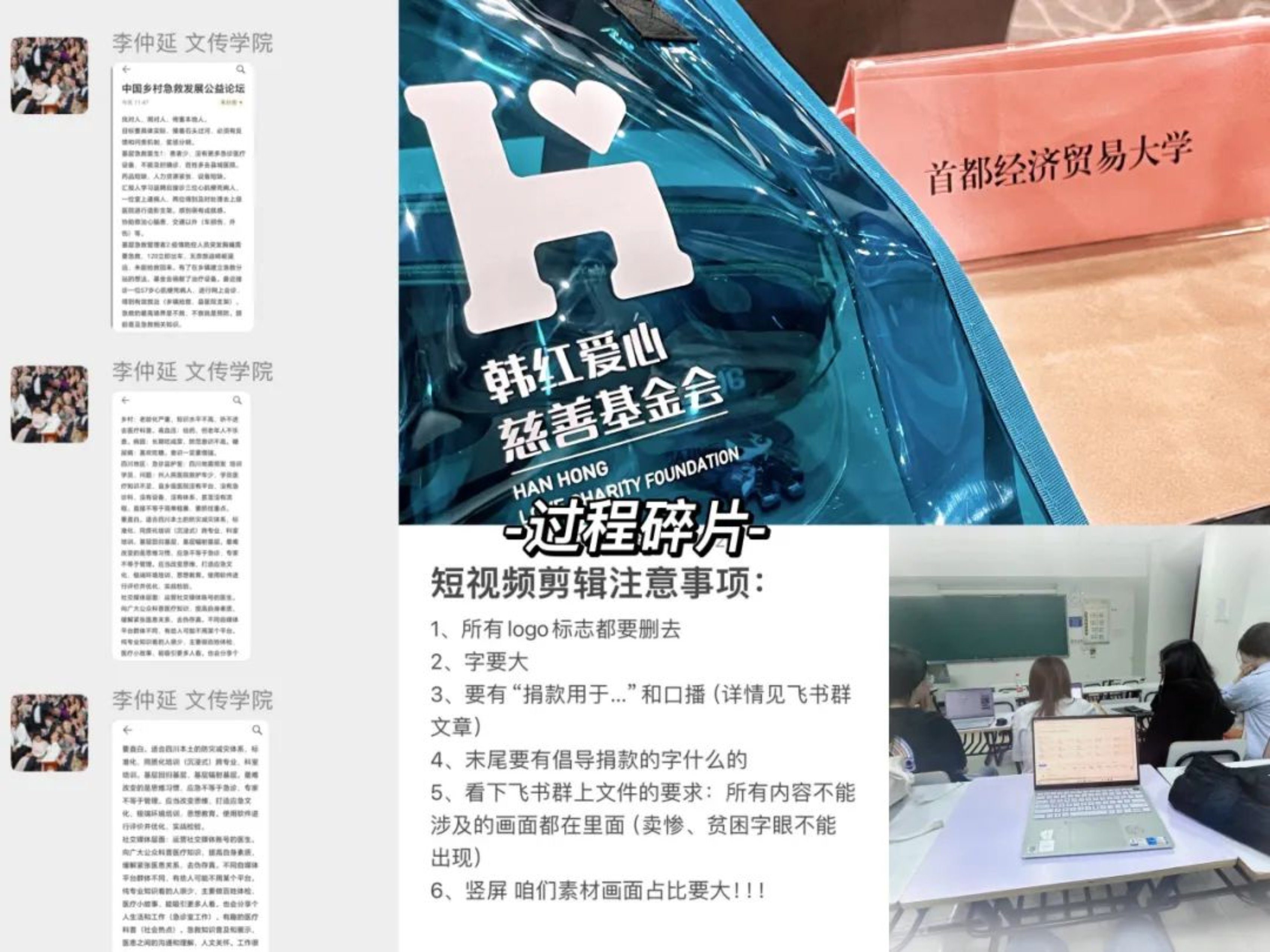 回顾整个制作过程,我们深感自己在脚本创作和视频剪辑方面都有了明显的进步。但同时,我们也意识到自己在很多方面还有待提高。因此,我们还会继续努力学习和实践,不断提升自己的专业能力;在此也特别鸣谢北京韩红爱心慈善基金会为我们对接资源与素材,感谢创意导师薛振添与指导老师谭宇菲、刘峻晟、王水老师的支持与鼓励。