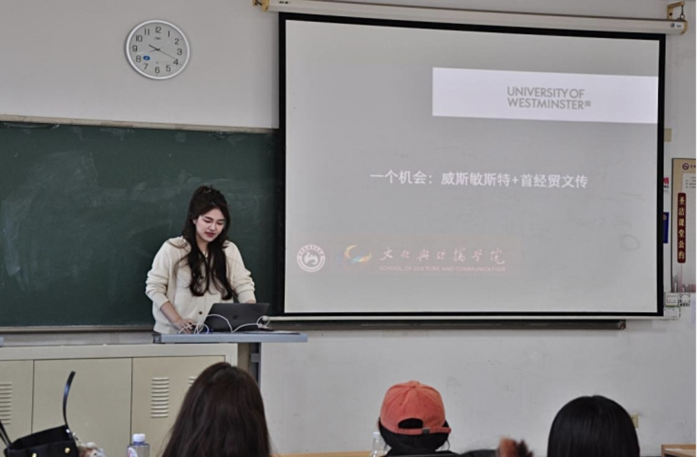 活动开始,李芊芊老师介绍了英国威斯敏斯特大学:它成立于1838年,位于英国伦敦,是全球十大传媒学校之一;威斯敏斯特大学位于伦敦中心,学生可轻松体验城市多元文化与历史底蕴;威斯敏斯特大学传媒专业提供先进的教学设备与行业资源,还有资深的教师团队,他们在行业有丰富的实践经验,帮助学生探索新媒体与传统媒体在全球化和人工智能等方面的前沿发展。