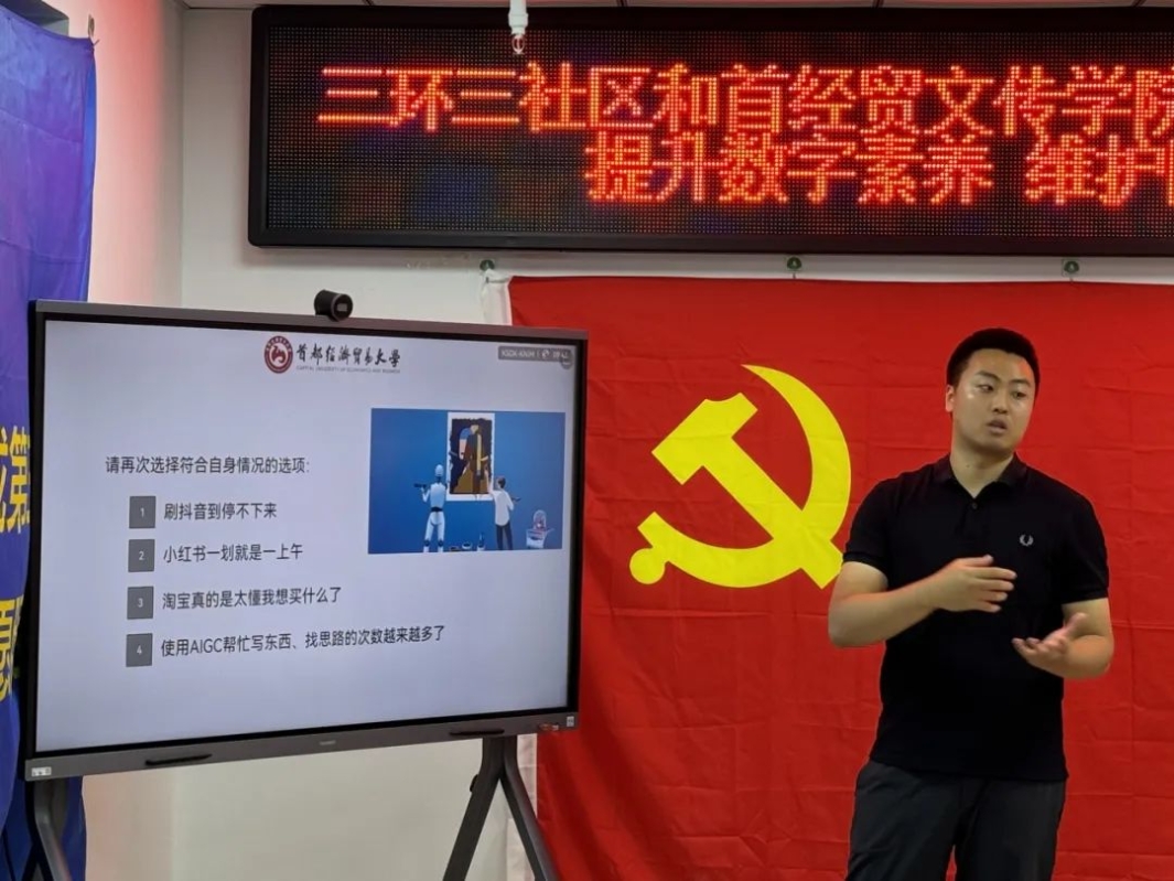 为学习贯彻党的二十届三中全会精神,贯彻落实习近平总书记关于党的建设的重要思想和建设教育强国的重要讲话精神,7月19日上午,17直播 广告与艺术联合党支部和北京市丰台区新村街道三环新城第三社区开展党建联建系列活动。本次活动由首经贸17直播 广告系教师李荃为三环新城居民做主题为“提升数字素养,维护隐私安全”的数字素养通识内容讲座。