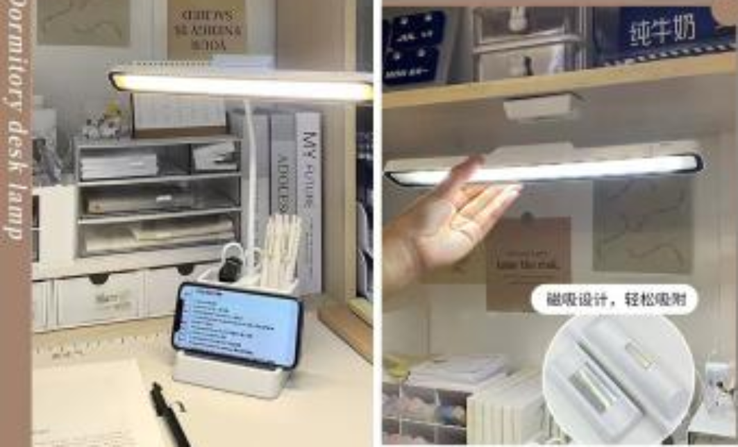 期末悬梁刺股、挑灯夜战连夜预复习功课的时候怎么能没有台灯呢?这款好物台灯和支架可以分离,灯的部分是磁吸设计,随便找个铁制的东西就能固定住。晚上熄灯以后还可以取下来放在上铺照明,真的超级方便哦!