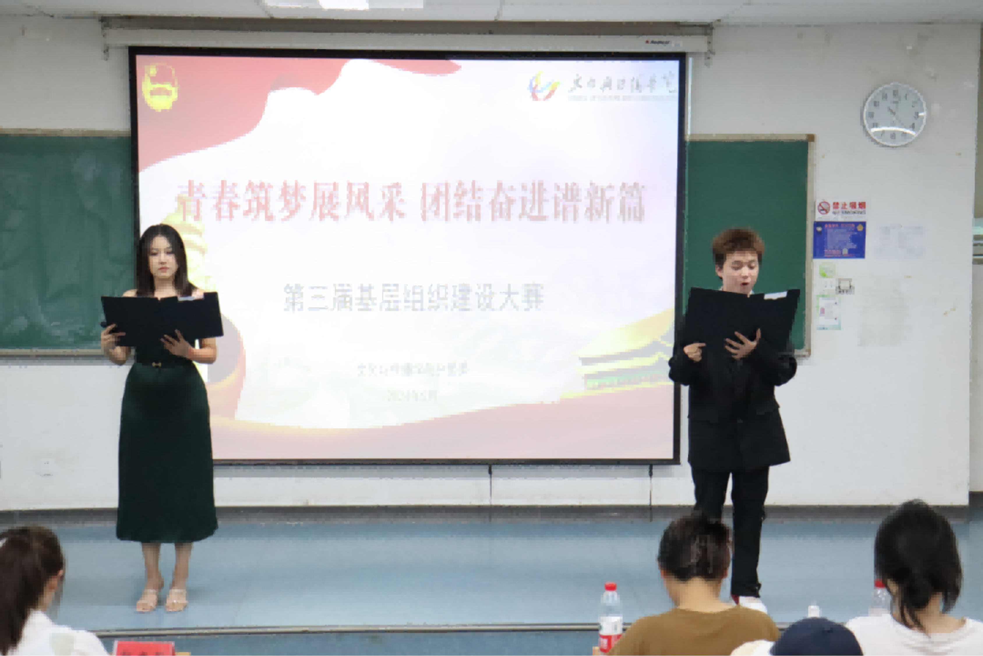 2024年5月20日18:00,17直播 “青春筑梦展风采 团结奋进谱新篇”第三届基层组织大赛在博学楼阶梯教室1顺利开展。本次大赛的评委有分团委书记郭奕彤、专职辅导员袁心玥、研究生党支部书记李欣怡、本科生党支部书记杨子墨、分团委副书记徐俊瑶、分团委副书记许璐、分团委副书记马宇时。党委副书记高琼出席了大赛。活动由马一博、吴诗熳主持。
