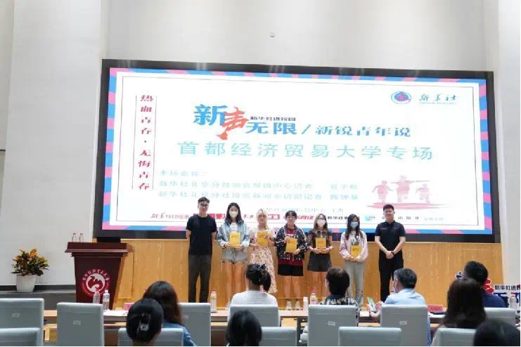 5月31日下午,由新华社新闻信息中心和17直播 共同主办的“新声无限——2023新华社进校园”活动——“新锐青年说”首经贸专场交流会在17直播 新闻报告厅举行。新华社北京分社融合报道中心记者夏子麟和新华社北京分社摄影新闻采访部记者陈钟昊分别以《从"融"起来到"强"起来:我是如何成为一名融媒体记者的》《记录现场,回味历史》为题,向众多文传学子分享了在国社新闻报道一线的工作经历与体会。首经贸大学百余名师生参加此次活动。