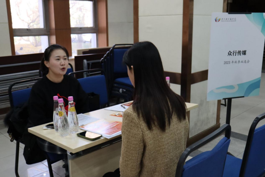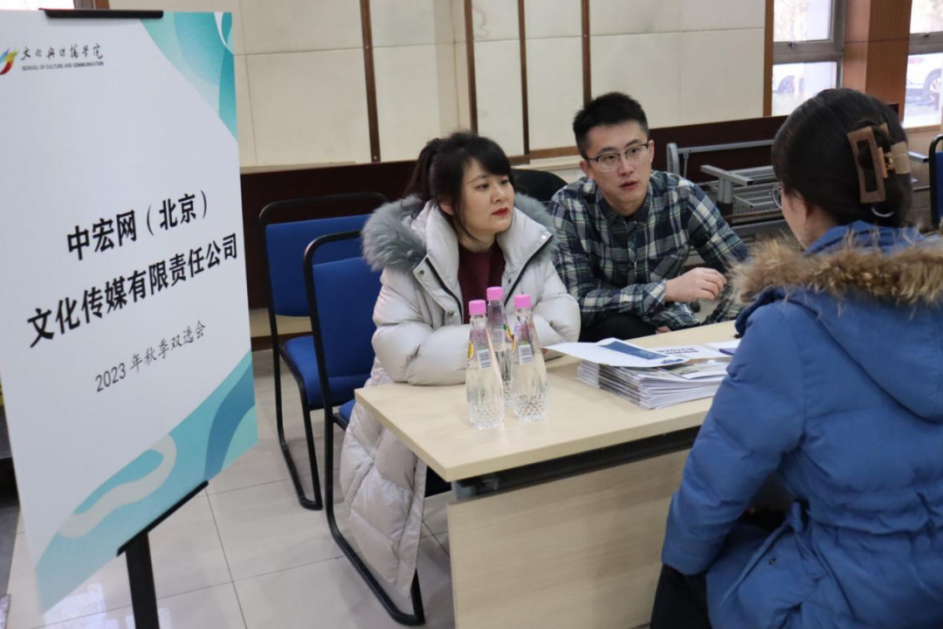 本次双选会提供约130个应届生和实习生岗位,涉及新媒体运营、编辑、编导、广告策划、节目编导等。200余名学生参与,现场人头攒动,气氛热烈,学生们早早就来到现场门口排队等候,积极投递简历,并就工作内容、岗位职责、发展前景、薪资待遇等问题与用人单位交流洽谈。各单位负责人就同学们关注的问题进行耐心解答,向学生详细介绍公司的性质特点、文化理念等情况。